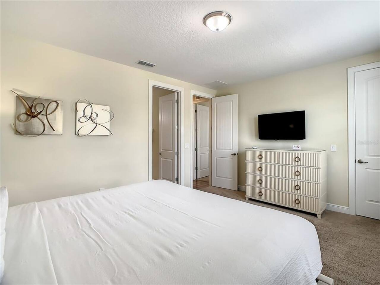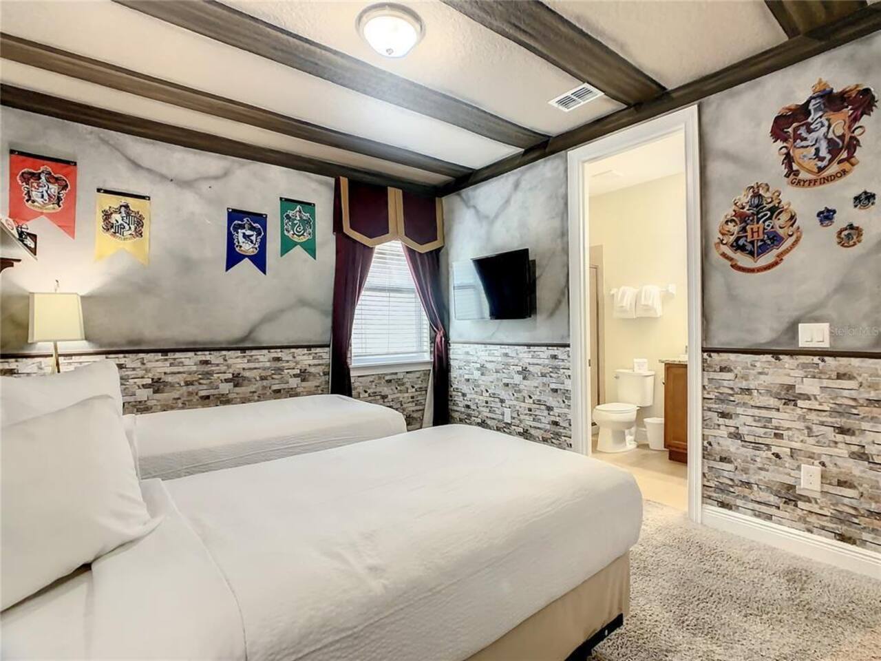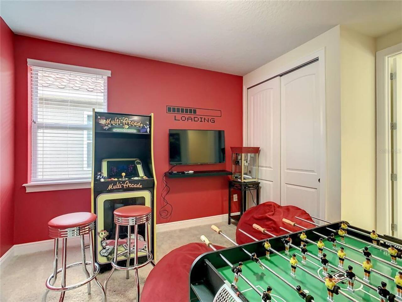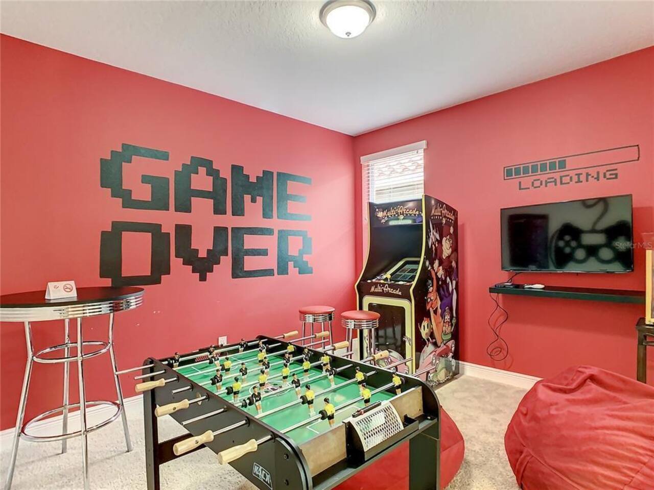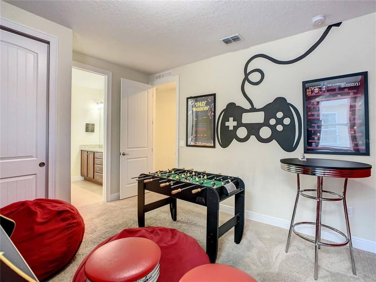 This cozy home offers two sofas in the main living area for some relaxation time to plan the day's adventure and a dining table for seating up to ten people as well as a two-seat breakfast bar in the kitchen for a Sunday family dinner or a midnight snack. Sleeping up to 16 guests, this home provides bedrooms across two floors with a king-sized suite on the bottom floor as well as a king-sized bedroom with a shared family bathroom adjacent. On the second floor, you will find two further king-sized suites, two bedrooms each with two twin-sized beds and connecting bathrooms (both themed), a bedroom with two full-sized beds, and an en suite Jack and Jill style bathroom connecting to a queen-sized bedroom. After the long days at the theme parks are over, this home offers a private swimming pool and spillover spa to unwind and cool off from Florida's sunshine. The themed games room offers a ping pong table for hours of entertainment and the upper floor loft area offers a large flat-screen TV and leather recliners to binge-watch your favorite TV series on. Make sure you explore the Encore Resort offering exclusive on-property amenities including a waterpark with thrilling drop and twisting slides, multiple restaurants and bars, sports courts, and an amenity center with a fitness room and kids' play area. The resort, less than a 10-minute drive to Disney World, offers a free shuttle service to the theme parks. HOUSE DISTANCE FROM: Orlando International Airport (MCO): Distance: Approximately 27 miles Travel Time: Approximately 30-40 minutes by car _________ Hollywood Studios: Distance: Approximately 7 miles Travel Time: Approximately 15-20 minutes by car _________ Animal Kingdom: Distance: Approximately 8 miles Travel Time: Approximately 15-20 minutes by car _________ Magic Kingdom: Distance: Approximately 9 miles Travel Time: Approximately 15-20 minutes by car _________ Epcot: Distance: Approximately 10 miles Travel Time: Approximately 20-25 minutes by car _________ SeaWorld: Distance: Approximately 14 miles Travel Time: Approximately 20-25 minutes by car _________ Orange County Convention Center: Distance: Approximately 15 miles Travel Time: Approximately 20-25 minutes by car _________ Universal: Distance: Approximately 19 miles Travel Time: Approximately 25-30 minutes by car _________ Legoland: Distance: Approximately 25 miles Travel Time: Approximately 35-45 minutes by car _________ Busch Gardens Tampa Bay: Distance: Approximately 61 miles Travel Time: Approximately 1 hour 15 minutes to 1 hour 30 minutes by car _________ Local Walmart and shopping: Distance: Approximately 2 miles Travel Time: Approximately 5-10 minutes by car