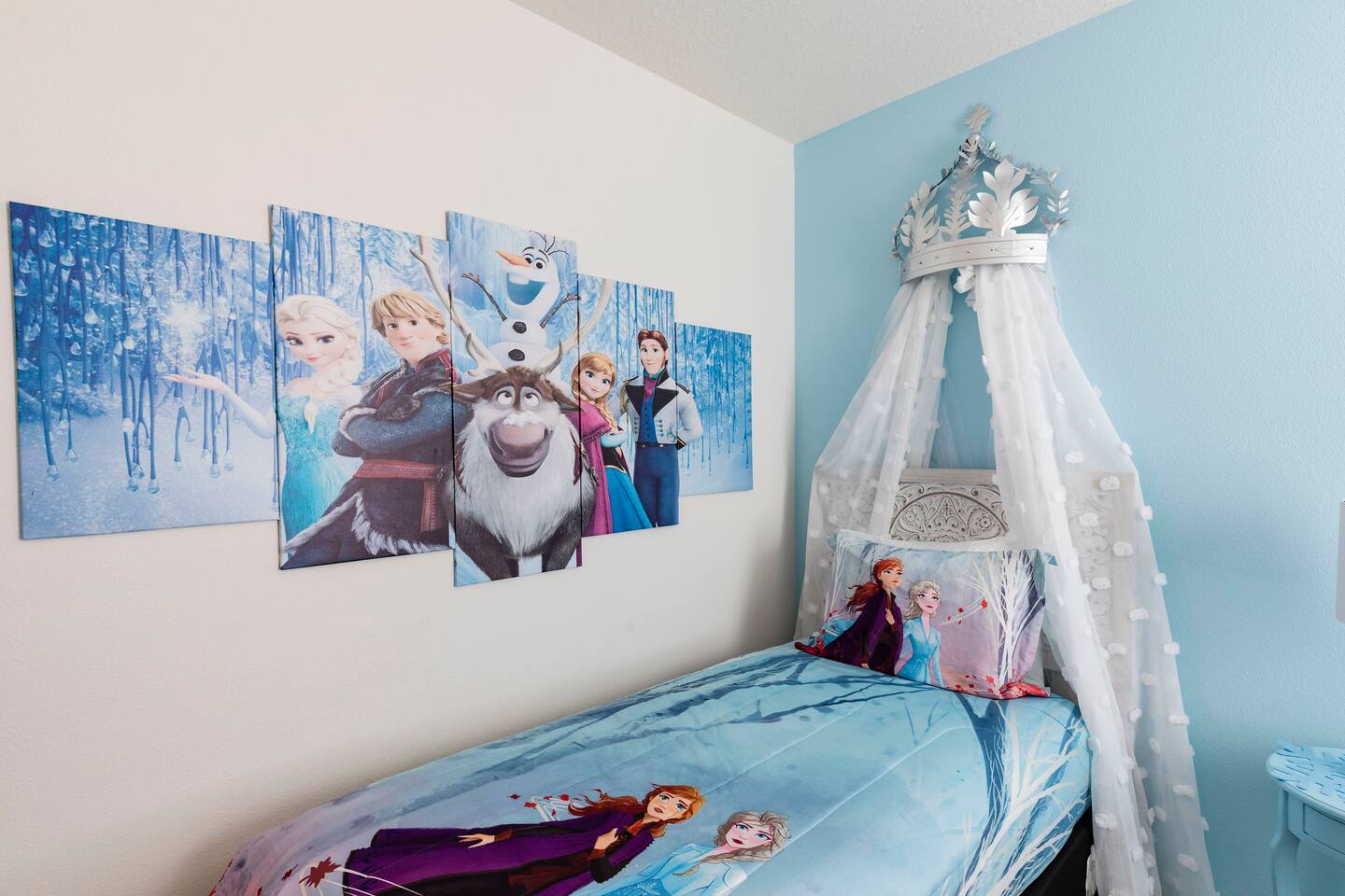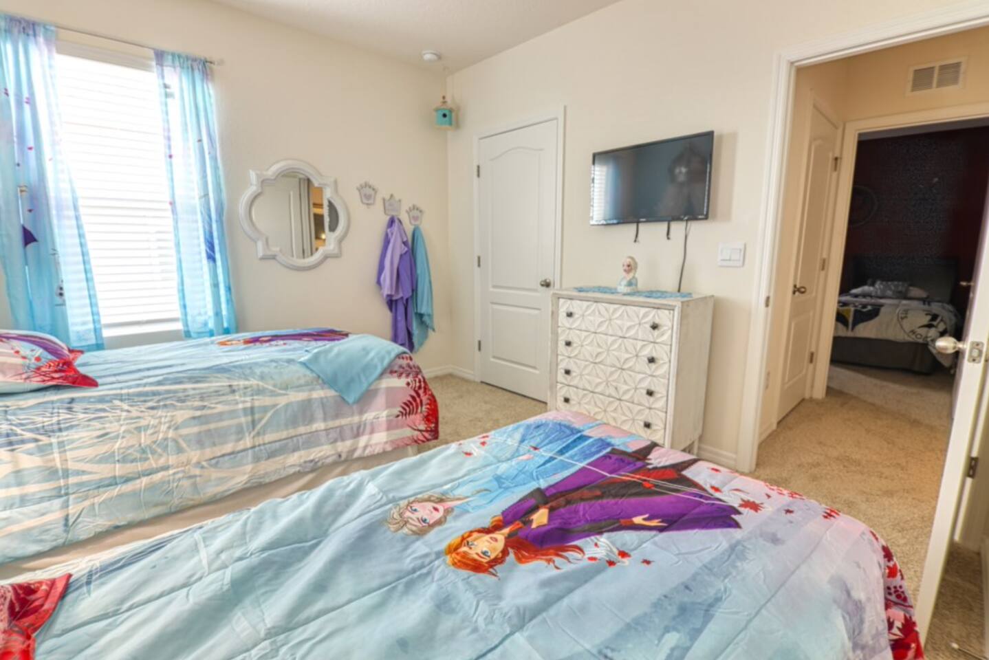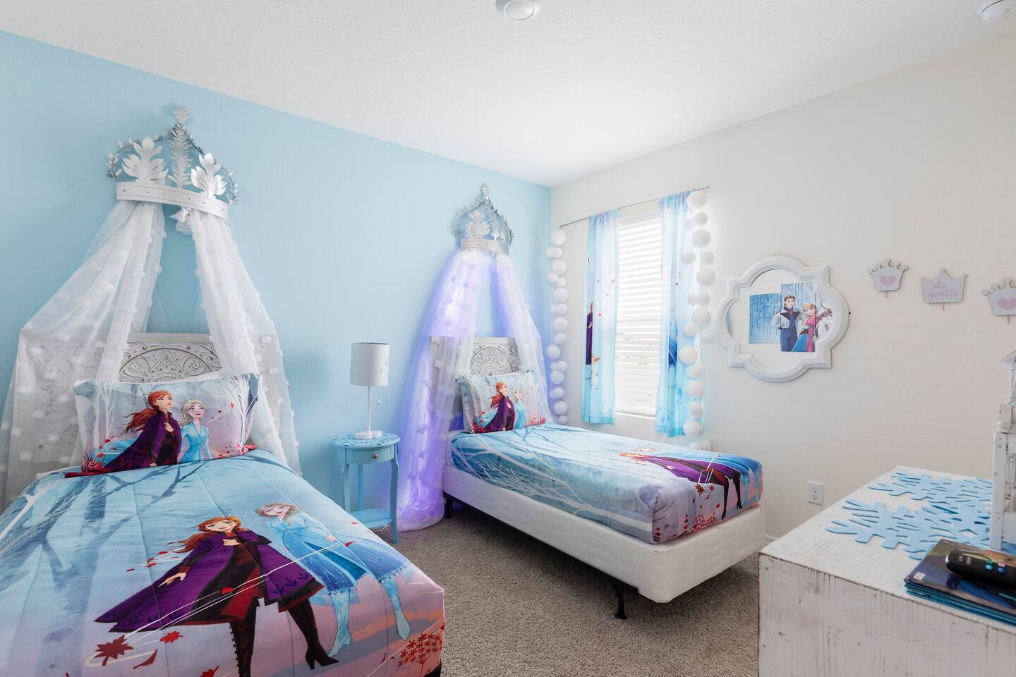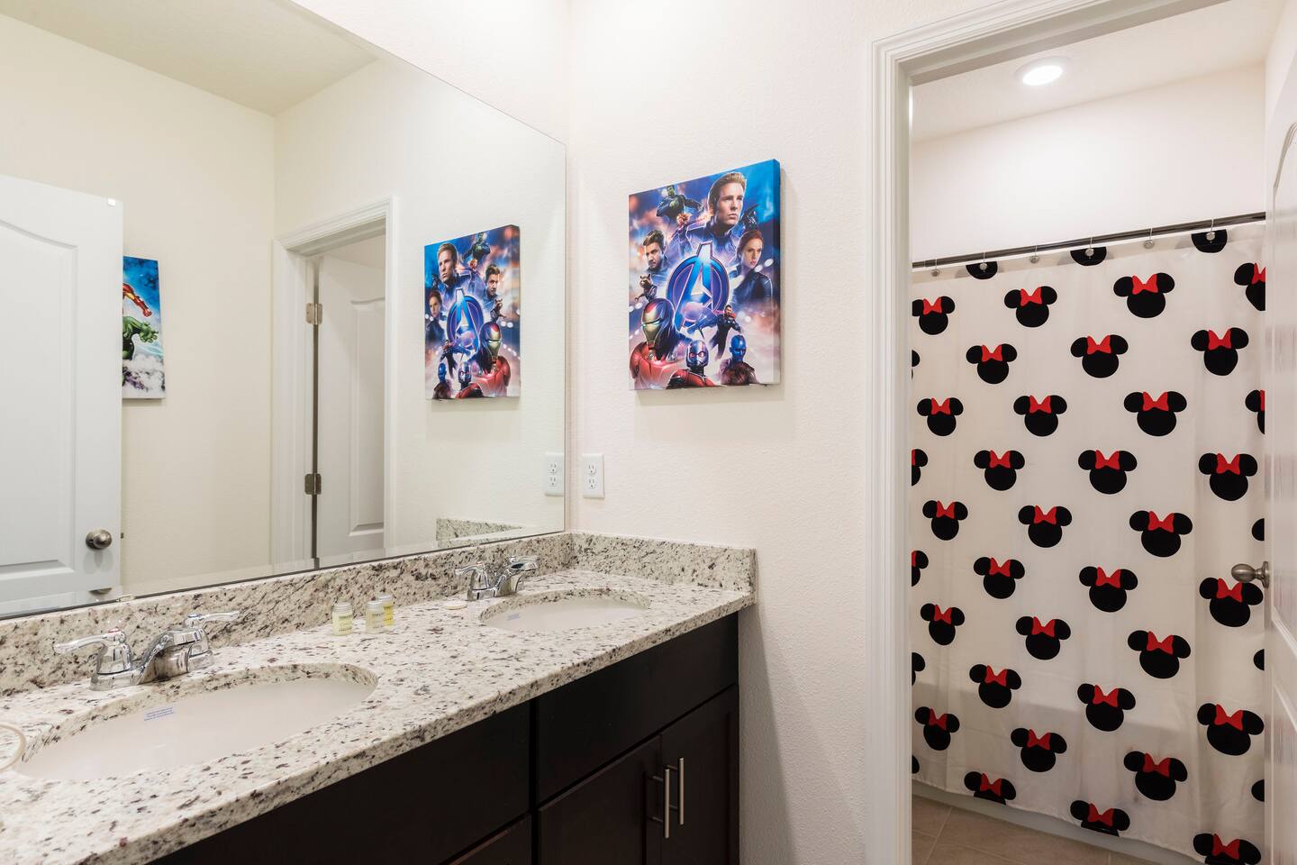 🏡 The Space Spread across more than 3,300 square feet, the villa has plenty of room for everyone. On the main floor are two master suites — one with a king bed and one with a queen bed, each with its own ensuite bathroom. Upstairs, you’ll find another king bedroom, another queen bedroom, plus two themed twin rooms (Frozen and Harry Potter). The second floor also has its own family room with dual TVs, perfect for games or movies. The kitchen is fully equipped with granite countertops and a breakfast bar, and the covered lanai offers outdoor dining, lounge chairs, and a child safety pool fence. 🌟 Highlights ------------------- 🔥 Free heated pool & hot tub 🎮 Themed game room with foosball and air hockey ❄️ Central AC throughout 🛏️ Frozen & Harry Potter themed bedrooms 🔑 Secure self check-in with private door code 🚗 Free on-site parking 🏊 Resort Amenities -------------------------- 🌴 Lazy river & water slide ☀️ Large resort pool with cabanas 💪 Fitness center & tennis courts 🍹 Clubhouse café & bar 📍 Location --------------- 🐾 Animal Kingdom – 15 min 🏰 Magic Kingdom & Hollywood Studios – 20–25 min 🌐 Epcot – 25 min 🎢 Universal Studios – 30–40 min 🛒 Walmart & shopping – 5–10 min ℹ️ Good to Know --------------------- – The pool heater works by heat exchange, so in colder weather it may not reach full warmth. – Mid-stay cleaning can be arranged for an additional fee. – Guests are asked to use the resort dumpsters for daily trash. – This is a self-catering home; please bring your own toiletries and groceries. 💬 Why Guests Love It Families rave about the spacious layout, themed bedrooms, and private pool. Guests also appreciate our fast communication and attentive management, so you can relax knowing any issue will be handled right away. 👉 Book your Orlando escape today — where family memories meet comfort, space, and Disney magic!