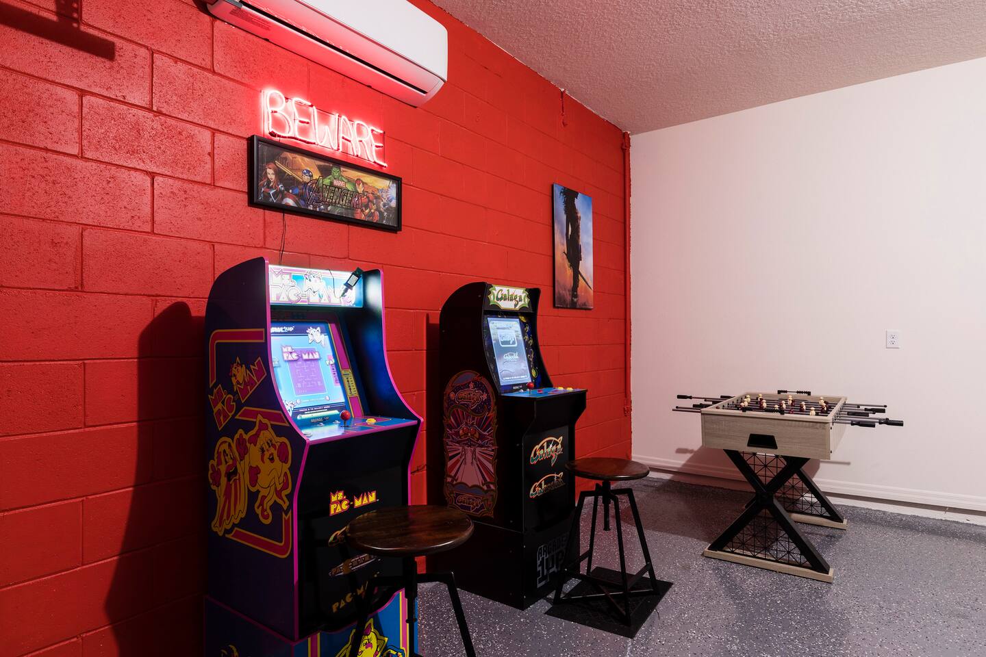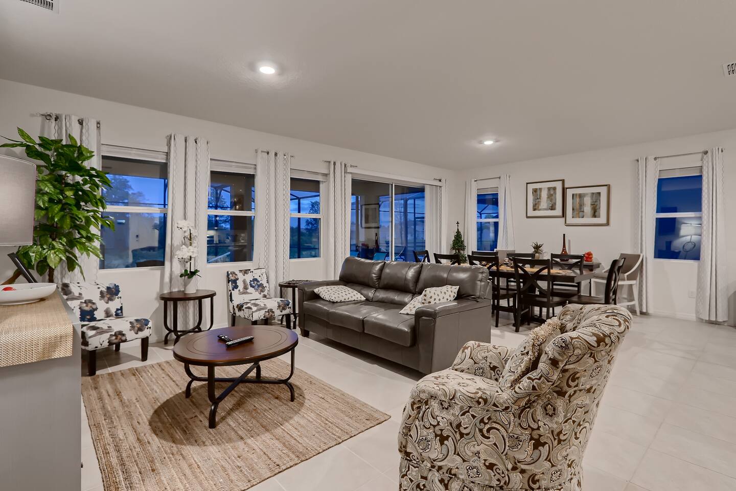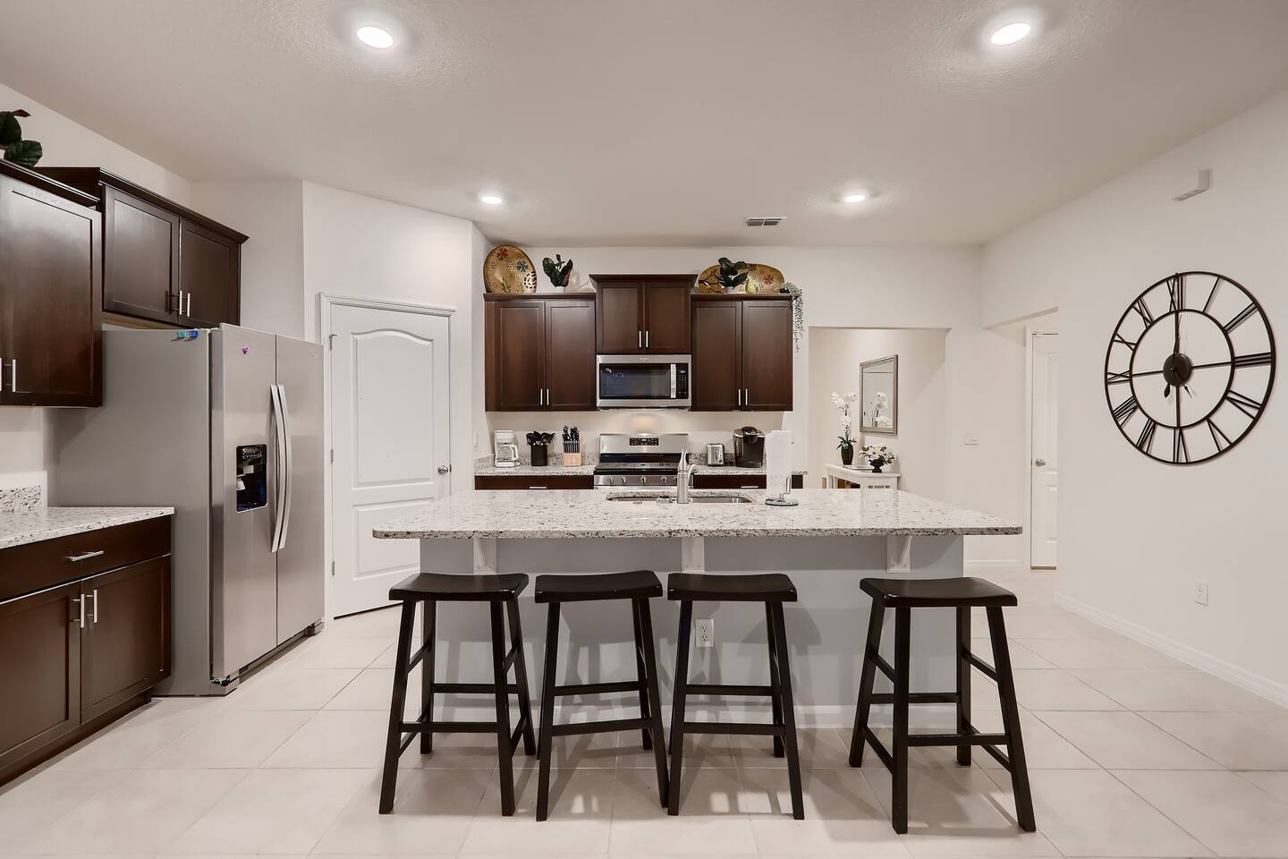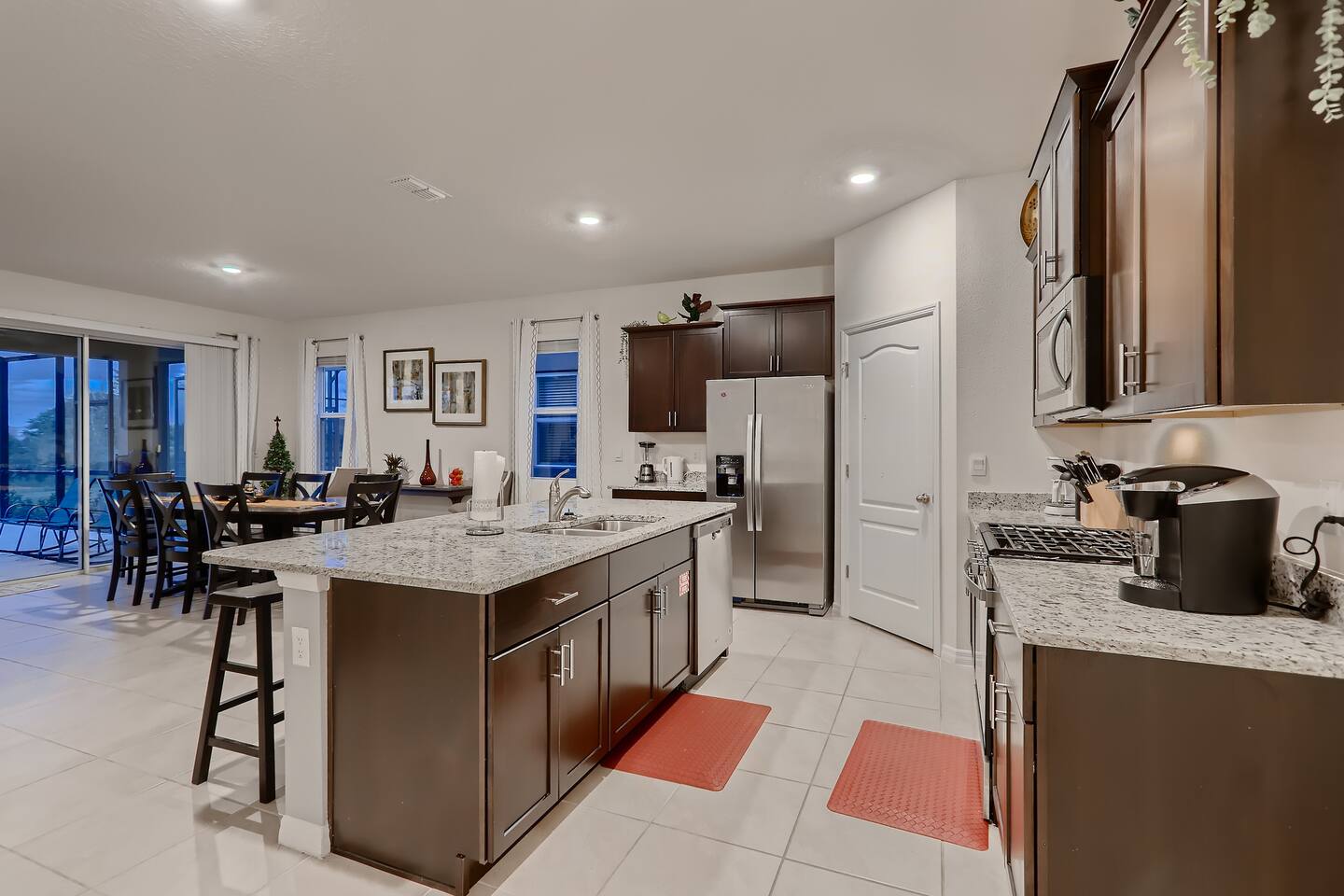 🏡 The Space Spread across more than 3,300 square feet, the villa has plenty of room for everyone. On the main floor are two master suites — one with a king bed and one with a queen bed, each with its own ensuite bathroom. Upstairs, you’ll find another king bedroom, another queen bedroom, plus two themed twin rooms (Frozen and Harry Potter). The second floor also has its own family room with dual TVs, perfect for games or movies. The kitchen is fully equipped with granite countertops and a breakfast bar, and the covered lanai offers outdoor dining, lounge chairs, and a child safety pool fence. 🌟 Highlights ------------------- 🔥 Free heated pool & hot tub 🎮 Themed game room with foosball and air hockey ❄️ Central AC throughout 🛏️ Frozen & Harry Potter themed bedrooms 🔑 Secure self check-in with private door code 🚗 Free on-site parking 🏊 Resort Amenities -------------------------- 🌴 Lazy river & water slide ☀️ Large resort pool with cabanas 💪 Fitness center & tennis courts 🍹 Clubhouse café & bar 📍 Location --------------- 🐾 Animal Kingdom – 15 min 🏰 Magic Kingdom & Hollywood Studios – 20–25 min 🌐 Epcot – 25 min 🎢 Universal Studios – 30–40 min 🛒 Walmart & shopping – 5–10 min ℹ️ Good to Know --------------------- – The pool heater works by heat exchange, so in colder weather it may not reach full warmth. – Mid-stay cleaning can be arranged for an additional fee. – Guests are asked to use the resort dumpsters for daily trash. – This is a self-catering home; please bring your own toiletries and groceries. 💬 Why Guests Love It Families rave about the spacious layout, themed bedrooms, and private pool. Guests also appreciate our fast communication and attentive management, so you can relax knowing any issue will be handled right away. 👉 Book your Orlando escape today — where family memories meet comfort, space, and Disney magic!